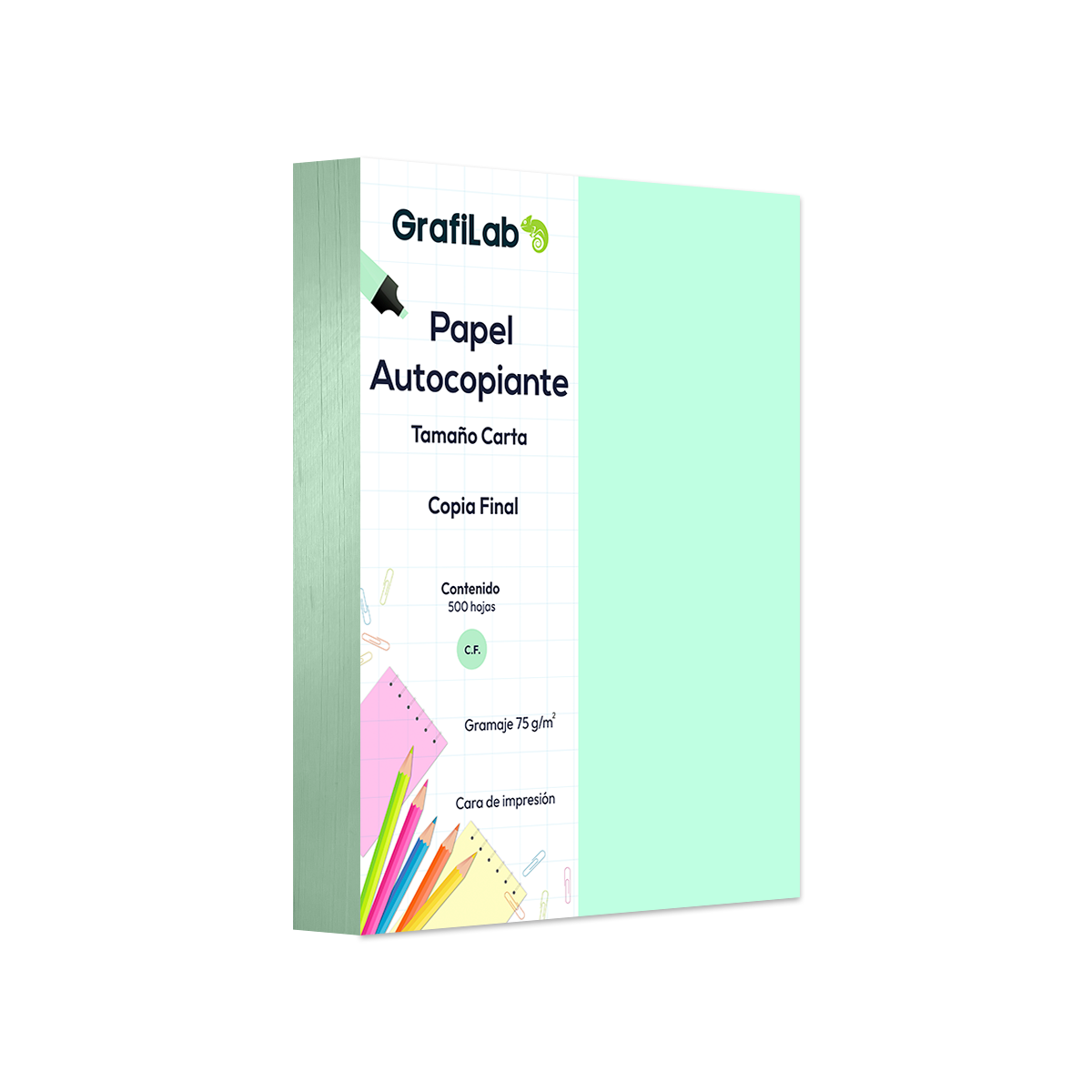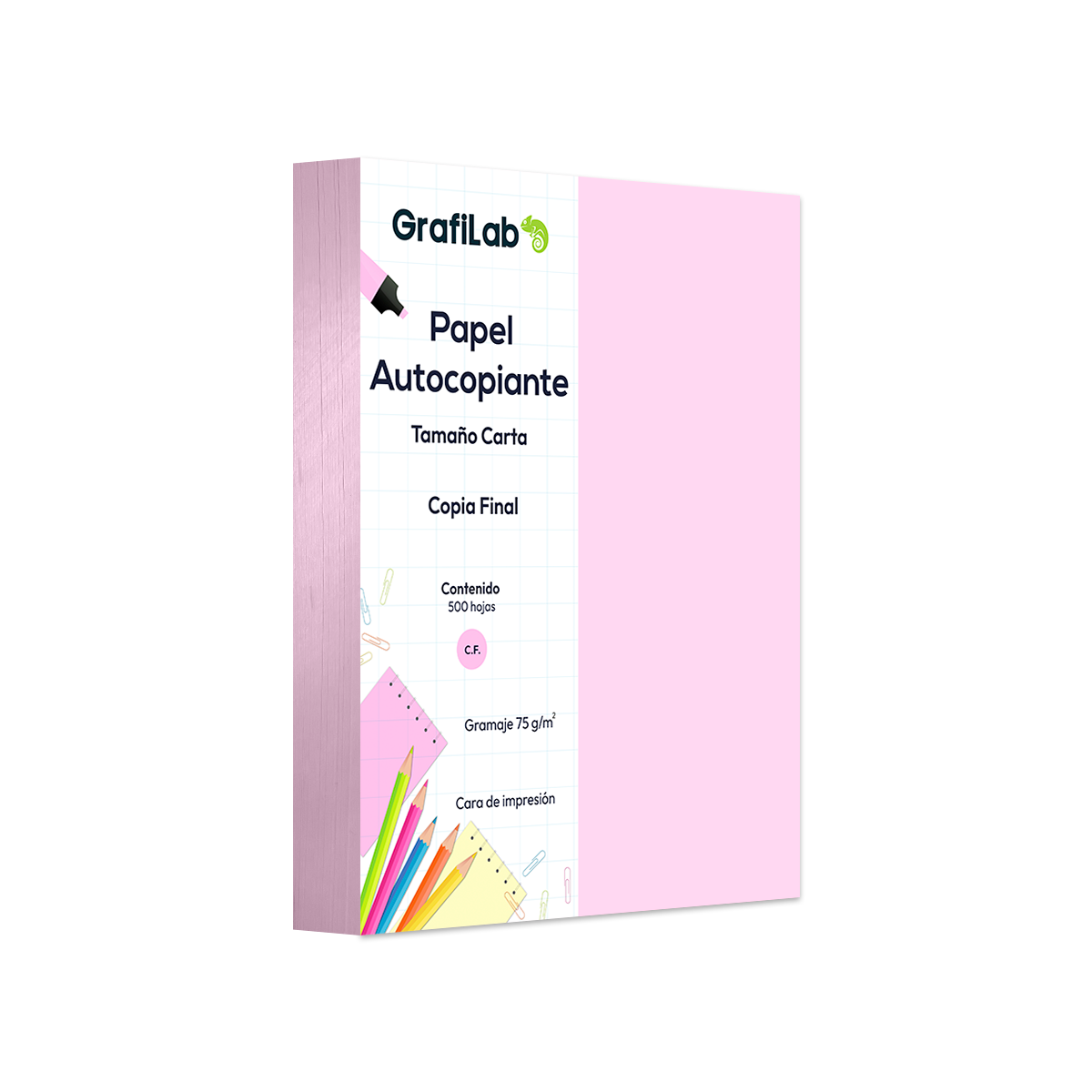 Completa tus juegos de formularios con la Copia Final (C.F.) de alta sensibilidad. Este paquete de 500 hojas de 75g es el receptor perfecto para la presión del original, garantizando una copia fiel, legible y libre de manchas. Ideal para el cierre de facturas, recibos y contratos donde se requiere una copia de archivo o para el cliente.